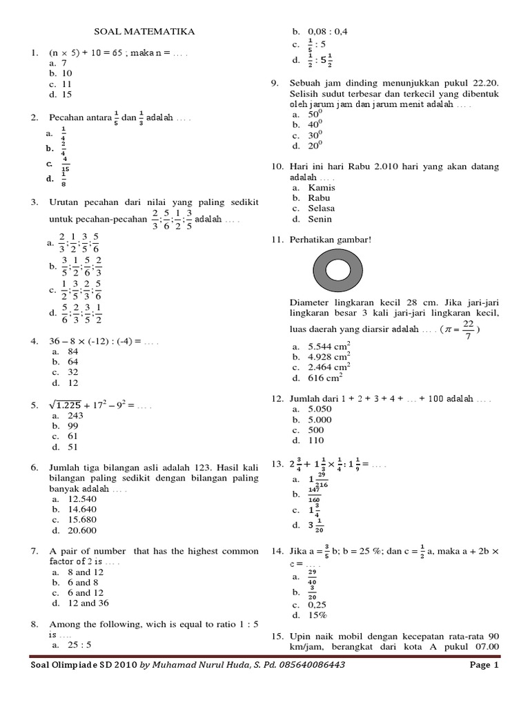 Osn menjadi salah satu ajang bergengsi yang ada di sd/mi sebab level ajang ini bisa sampai tingkat. Soal osn matematika sd/mi dan pembahasannya berikutnya bapak/ibu guru juga bisa mengunduh berkas soal osn mata pelajaran matematika tingkat sekolah dasar unduh pula: Pembahasan soal osn sd bidang matematika tahun 2019 dapat dimanfaatkan untuk persiapan osn sd tahun 2020. Berikut contoh soal olimpiade matematika tingkat sd/mi dan pembahasannya. Guru sd smp sma contoh soal olimpiade matematika smp aljabar.